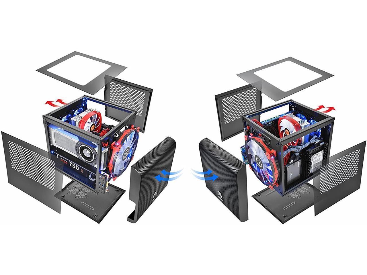 The new Core V1 represented by Thermaltake is a small and cute ITX based chassis with a 200mm fan in the front panel. Smart interchangeable side panels allow users to flip it accordingly to showcase either for superior liquid cooling or superb airflow, which allows you to make your own personal setup. You not only grant to have a really powerful mini system, it also has the ability to house various overclocking components to keep it really cool!